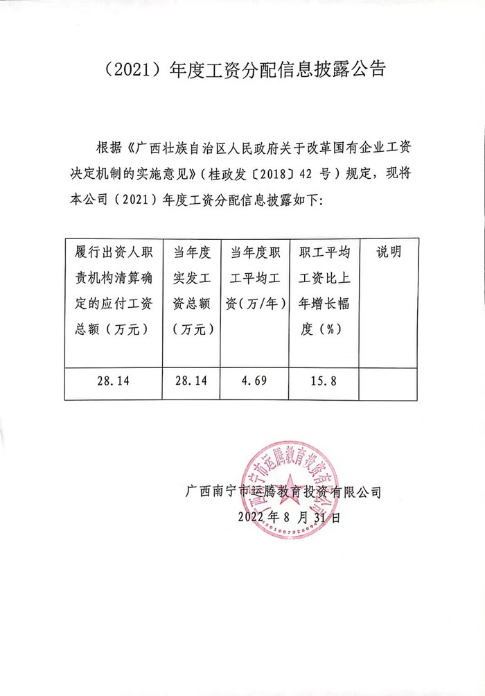 5.广西南宁市运腾教育投资有限公司2021年度工资分配信息披露公告