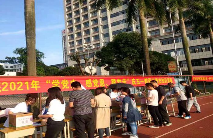 4月29日下午,趣味篮球投篮比赛和党史知识有奖问答竞赛在足球场举行。趣味篮球比赛规则为每个人可自由选择投篮地点,按投篮矩离计分,在3秒区以内投中记1分,3秒区以外投中记2分,3分线以外投中记3分,中线以外投中记4分。每组6人,每人5球,每个成员得分之和作为本队的最终得分。党史学习知识有奖问答竞赛则采取抽题问答方式进行,均为选择题。