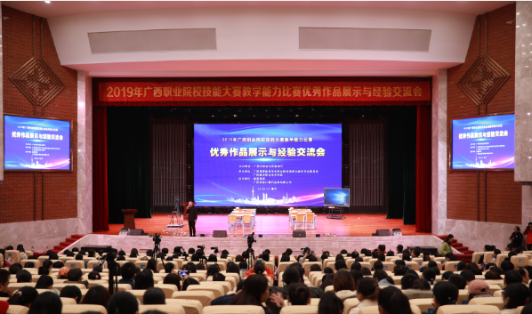 12月26日下午,由自治区教育厅主办的2019年广西职业院校教学能力大赛优秀作品展示与经验交流会,在广西建设职业技术学院礼堂召开,自治区教育厅教育信息化管理处处长魏莹莹,广西高等教育学会职业院校信息化教学专委会理事长、广西职业技术学院院长梁裕,广西建设职业技术学院院长吴昆,全区各职业院校、友好合作企业的领导以及大赛的评委专家、获奖代表、教师代表共1000余人参加了大会。我院也派出了8名教师参加本次交流会。