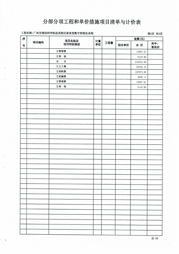 (四)采购需求:详见附件一《广西交通技师学院邕武校区新食堂数字智能化系统工程 招标控制价》相关内容。