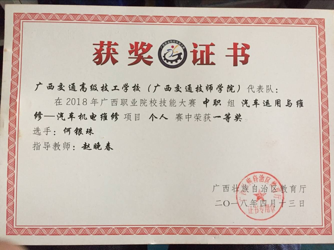 2017年全国机械行业职业院校技能大赛—“爱夫卡杯”商用车检测与维修技能大赛一等奖  |