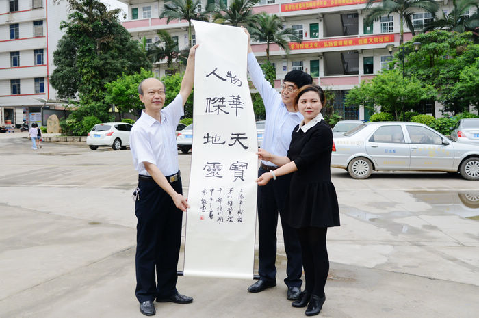 上海市西南工程学校党总支书记、副校长乔敏向我院赠送书法纪念品